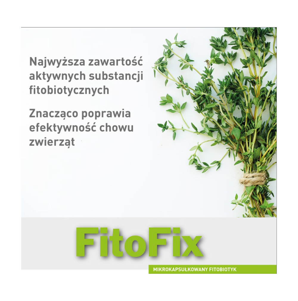 FitoFix to mikrokapsułkowana formuła fitobiotyku, która wykorzystuje moc tymolu i aldehydu cynamonowego do walki z patogenami takimi jak E. coli i S. typhimurium. Zawierając 200 mg aktywnych substancji fitobiotycznych na gram, FitoFix nie tylko efektywnie redukuje populację bakterii patogennych, ale także zwiększa liczbę korzystnych bakterii kwasu mlekowego. Dzięki swoim właściwościom hepaprotekcyjnym i przeciwzapalnym, FitoFix przyczynia się do poprawy ogólnego stanu zdrowia zwierząt, zwiększenia żywej masy ciała oraz obniżenia poziomu reaktywnego tlenu w mięsie, co prowadzi do lepszej jakości produktów mięsnych. FitoFix stanowi skuteczną alternatywę dla tradycyjnych metod zwiększania masy ciała i jest idealnym rozwiązaniem dla hodowców poszukujących naturalnych sposobów wspierania zdrowia zwierząt.